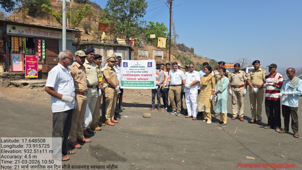 जागतिक वनदिनाचे औचित्य साधत सातारा वनविभागाच्या वतीने ऐतिहासिक किल्ले सज्जनगड येथे “प्लास्टिकमुक्त सज्जनगड स्वच्छता अभियान” मोठ्या उत्साहात पार पडले. छत्रपती