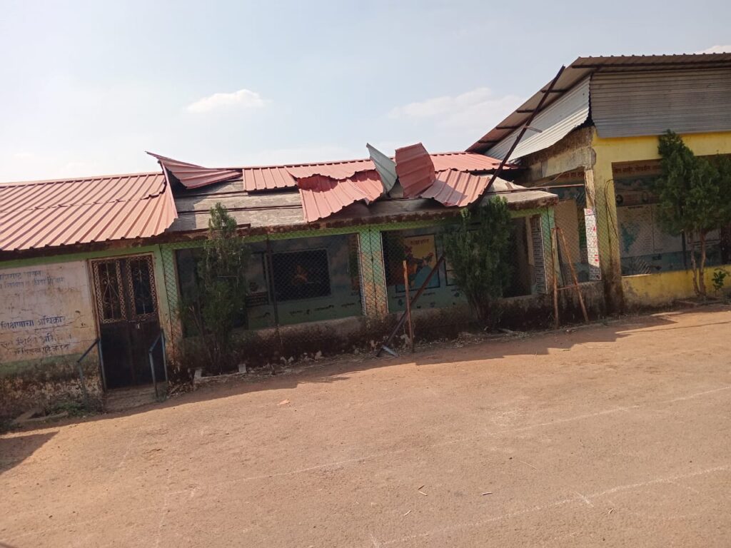 चक्रीवादळाने रेंडीमुरा जि.प. शाळेचा पत्रा उडाला; मोठा अनर्थ टळला, प्रशासनाने तात्काळ दखल घ्यावी